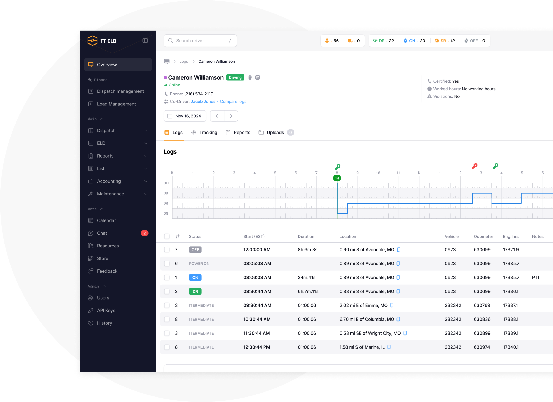 TT ELD is an industry-leading electronic logging device. Our ELD compliance solution provides users with a wide variety of comprehensive features.
